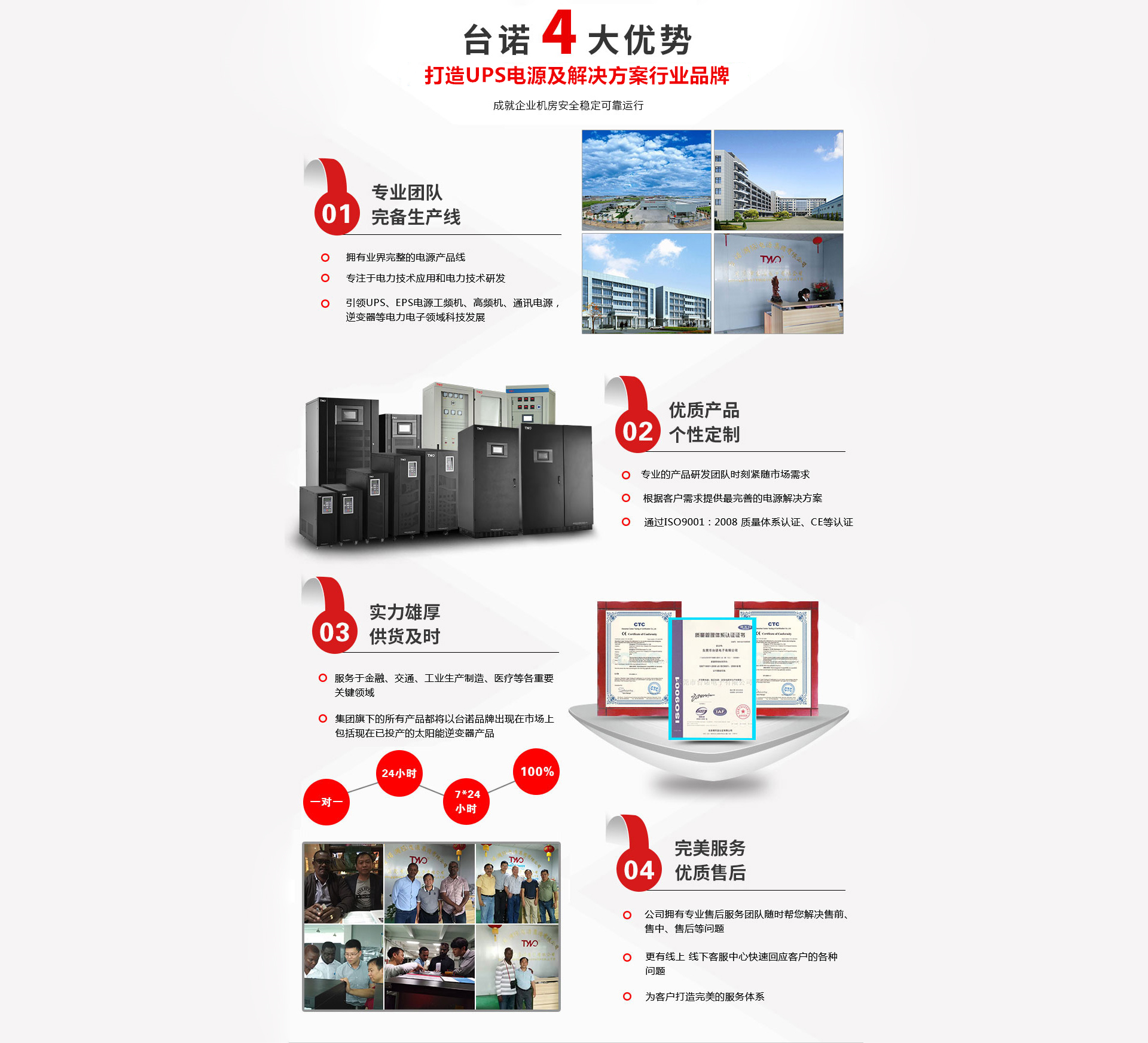 東莞市臺諾電子有限公司是一家以新能源、UPS不間斷電源、EPS應(yīng)急電源、交直流穩(wěn)壓電源、鉛酸免維護蓄電池、智能變頻電源、智能開關(guān)電源、智能一體化逆變電源、智能電源監(jiān)控系統(tǒng)的研究、開發(fā)、生產(chǎn)、經(jīng)營、銷售及技術(shù)推廣等多行業(yè)發(fā)展高新企業(yè)。公司位于東莞市毗鄰中國南方經(jīng)濟重地廣州、深圳,交通發(fā)達,信息暢通。系廣東重點高新技術(shù)企業(yè)、東莞市創(chuàng)新型企業(yè)、也是中國電源協(xié)會、廣東省材料與器件產(chǎn)業(yè)技術(shù)創(chuàng)新戰(zhàn)略聯(lián)盟、 東莞市臺諾電子有限公司隸屬于臺諾集團,是一家有多年UPS集設(shè)計研發(fā)、生產(chǎn)銷售、售后服務(wù)為一體的公司,擁有業(yè)界完整的電源產(chǎn)品線,專注于電力技術(shù)應(yīng)用和電力技術(shù)研發(fā)。公司致力于向全球客戶提供性能好、品質(zhì)好的產(chǎn)品與服務(wù)。UPS、EPS電源工頻機、高頻機、通訊電源、光伏、逆變器等電力電子領(lǐng)域科技發(fā)展,創(chuàng)造可靠、節(jié)能的產(chǎn)品,致力于為客戶提供完善的電源解決方案。產(chǎn)品廣泛應(yīng)用于政府、金融、通信、教育、交通、氣象、廣播電視、工商...